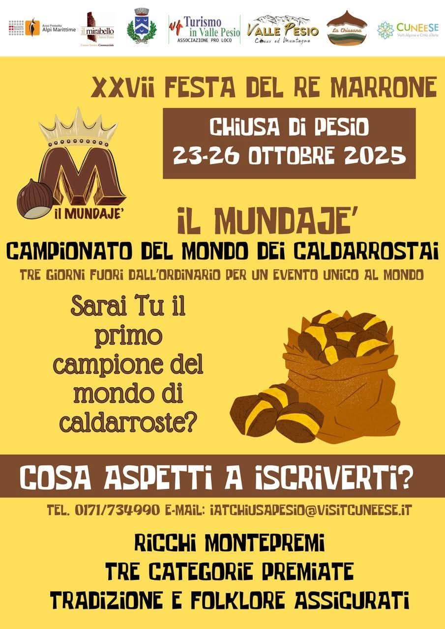 Il borgo di Chiusa di Pesio si prepara a ospitare la 27ª edizione della Festa del Re Marrone, un evento che celebra il pregiato Marrone di Chiusa di Pesio e le tradizioni locali. Il programma del fine settimana, previsto per sabato 25 e domenica 26 ottobre 2025, offre una serie di appuntamenti imperdibili per tutti gli amanti della gastronomia, della cultura e del divertimento.