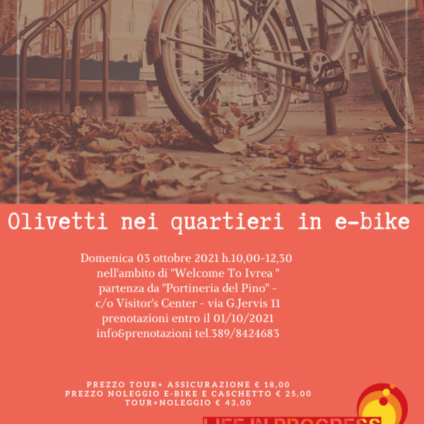 Nell'ambito della rassegna Welcome tour Ivrea, un giro nell' Ivrea dei quartieri, e delle case Olivettiane, raccontando la Comunità, pedalando come i primi operai di Adriano.. Patrocinio come da locandina allegata prezzo tour+assicurazione € 18,00 prezzo noleggio bike e caschetto :€ 25,00 pacchetto tour + bike = € 43,00 tour si conferma con nr.minimo partecipanti iscrizioni entro […]