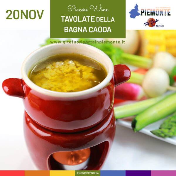 Gran Bagna Caoda nella tradizionale "Terrina di Coccio" con verdure degli Orti cuneesi, dove si potranno apprezzare tutte le sfumature gustative di questo antico piatto piemontese PROGRAMMA: Ore 10,30 circa arrivo con vostri mezzi ad Alba ed incontro con un nostro collaboratore. Visita ad una "Cantina del Buon Bere" dove potrete apprendere direttamente dal produttore vinicolo tutte le varie […]