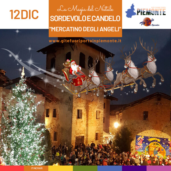 Gita in giornata al Mercatino degli Angeli a Sordevolo ed al Borgo di Natale al Ricetto di Candelo PROGRAMMA: Sistemazione su pullman Gran Turismo ed inizio del viaggio. A Sordevolo l'atmosfera di festa si respira entrando in paese, tra le vie illuminate e gli angeli, immensi, che ti danno il benvenuto. L'allestimento proposto è volto […]