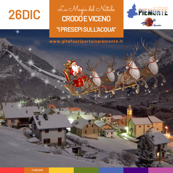 Una gita in giornata a Crodo e Viceno per vedere i Presepi sull’acqua, una delle manifestazioni natalizie più apprezzate e particolari d’Italia! Un evento diffuso tra i borghi della Valle Antigorio che mostra presepi frutto del lavoro di maestri artigiani, realizzati con elementi naturali del territorio della Val d’Ossola. PROGRAMMA: Sistemazione su pullman Gran Turismo […]