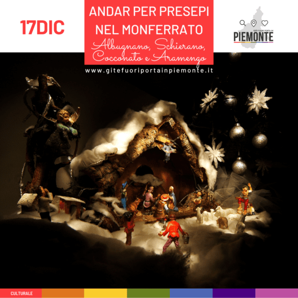 SABATO 17 DICEMBRE 2022 ALBUGNANO, SCHIERANO, COCCONATO E ARAMENGO Andar per presepi nel Monferrato PROGRAMMA: L'arte presepiale stupisce e incanta, rinnovando ogni anno la magia dei piccoli borghi del Monferrato che si animano con straordinarie rassegne di presepi unici e originali. Ad Albugnano, Balcone del Monferrato, con i suoi 549 metri di altezza, il grande presepe, […]