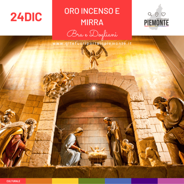 SABATO 24 DICEMBRE 2022 BRA e DOGLIANI Oro incenso e mirra PROGRAMMA: Ospitato nella Chiesa di Santa Croce di Bra, il presepe artistico ed elettromeccanico, che riproduce fedelmente alcuni scorci della città, tra cui la Zizzola, è davvero eccezionale ed unito al silenzio della chiesa e alla suggestione delle luci dorate, regala ai visitatori uno […]