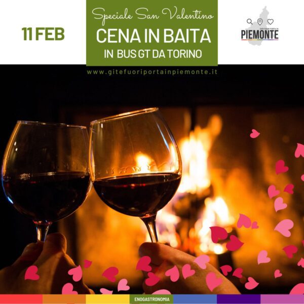 SAN VALENTINO IN BAITA COMPRESO DI BUS GT DA TORINO SABATO 11 FEBBRAIO 2023 PROGRAMMA: Incontro alle ore 17,30 con il nostro accompagnatore e partenza con bus GranTurismo da Corso Giulio Cesare (davanti a Mc Donald) e da Rivoli (Cascine Vica davanti a ex Io Bimbo) h 18,00. Arrivo a Sauze d’Oulx. Simpatico trasferimento in motoslitta per […]