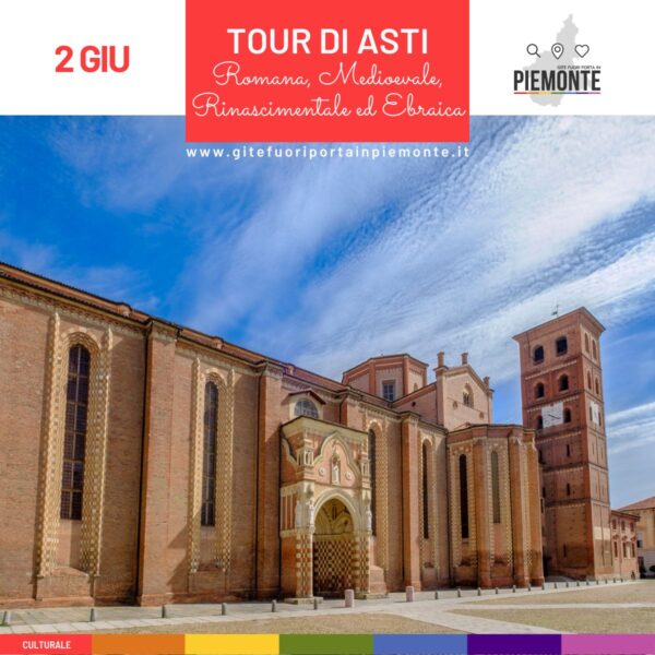 Ulteriori informazioni »Conosci Asti? Vieni a scoprire la Asti romana, medievale, rinascimentale ed ebraica Domenica 2 Giugno 2024 (ADESIONI ENTRO IL 31/05/2024) Scopri ASTI! Tour guidato della città: dall’epoca romana a oggi. L’appuntamento sarà in piazza Campo del Palio alle ore 9, dove incontrerai la Guida professionista che ti accompagnerà per tutta la giornata. Ti attende una città che ti […]