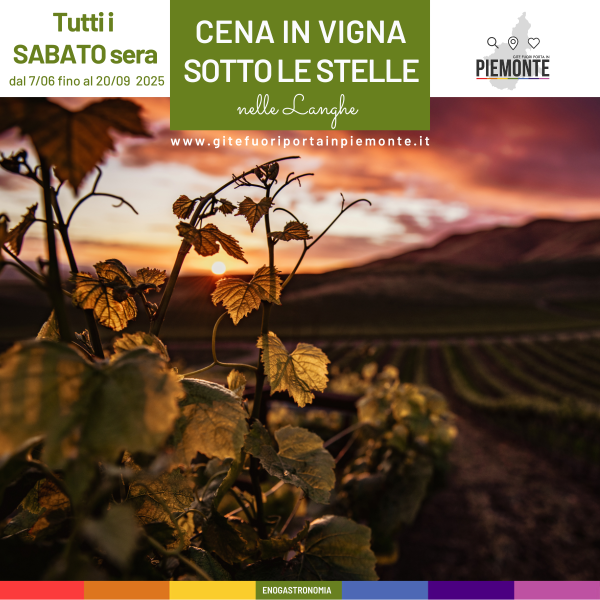 Ulteriori informazioni »Tutti i sabato sera torna il successo dell'Estate tra Vigneti e Sapori: Cena in Vigna nelle Langhe! Dal 7 giugno al 20 settembre 2025, tutti i sabato sera torna l’evento più atteso dell’estate! Non confondetelo con le imitazioni: qui troverete qualità autentica, atmosfera magica e un'esperienza davvero indimenticabile. Immagina una serata immersa tra i vigneti […]