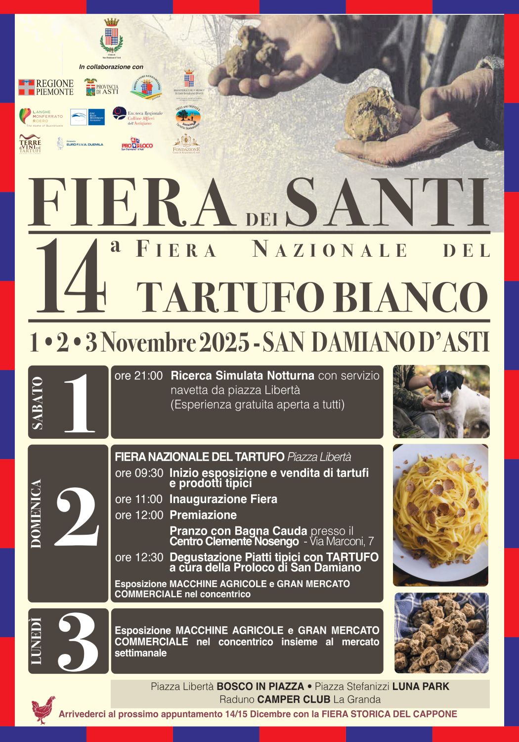 Si avvicina il momento clou dell’autunno sandamianese: domani sarà la giornata centrale della 14ª Fiera Nazionale del Tartufo Bianco e Fiera dei Santi, con un ricco programma che unisce sapori, animali e convivialità.