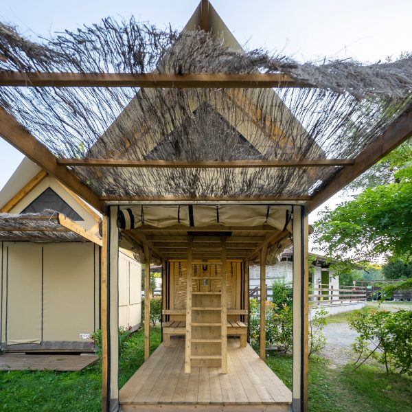 Per coloro che desiderano un soggiorno a stretto contatto con la natura, le Tende SAFARI sono la soluzione perfetta. Questi alloggi pratici ed essenziali sono composti da un pian terreno con tavolo, sedie e un piccolo cucinino attrezzato. Una scala in legno interna conduce al piano rialzato, dove sono sistemati fino a tre materassi. Queste tende sono ideali per chi cerca un’esperienza semplice e naturale; tuttavia, non sono ammessi animali e non dispongono di riscaldamento o aria condizionata.