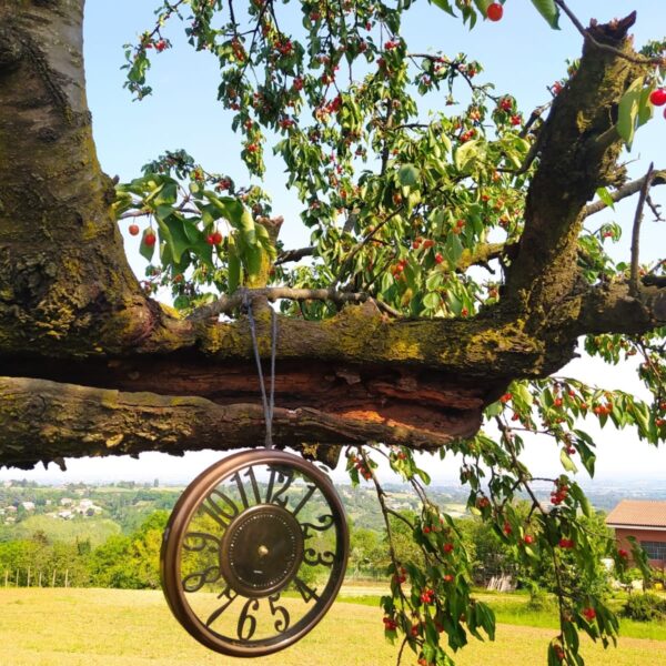 Ma il Giardino di Rosero non è solo tulipani e zucche. Uno degli angoli più suggestivi è il Viale dei Ciliegi, un percorso magico che conduce i visitatori al giardino, in primavera il viale è arricchito da ciliegi in fiore che incorniciano il panorama. Carlotta ha voluto rendere speciale questo angolo, appendendo un simbolico orologio all’inizio del viale, a indicare che qui il tempo sembra fermarsi. Lungo il sentiero, colorate porte “gnomesche” appese ai tronchi degli alberi aggiungono un tocco fiabesco, portando i visitatori in un mondo di tranquillità e meraviglia.