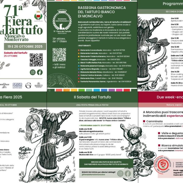 A Mombercelli, la tradizione incontra la gastronomia: oltre al mercato del tartufo, troverete produttori agricoli, banchi gastronomici, degustazioni guidate e momenti di intrattenimento per famiglie. Un’occasione per scoprire il Monferrato autentico e i suoi sapori.