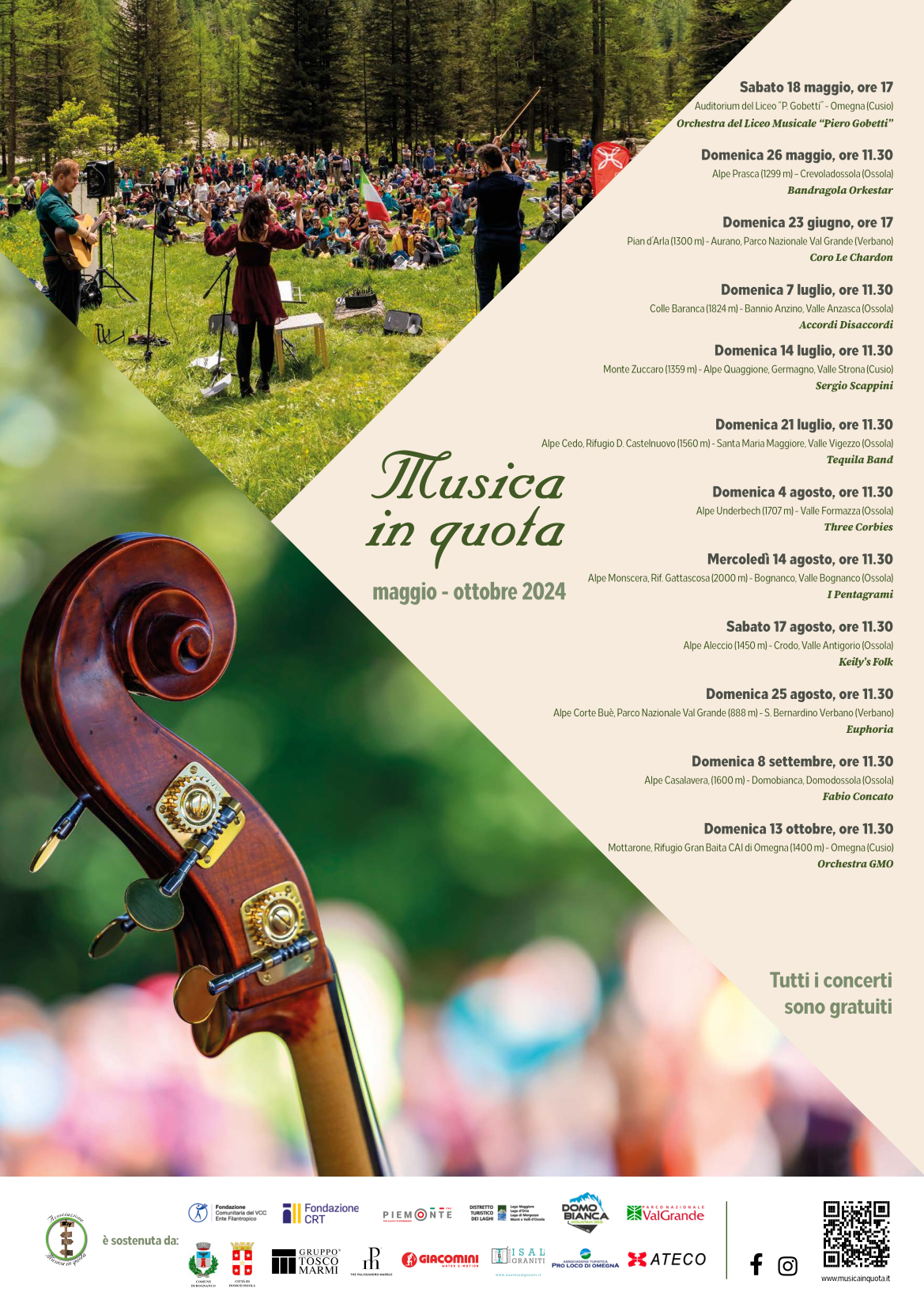 Il programma completo della stagione 2024 è disponibile sul sito web www.musicainquota.it.
