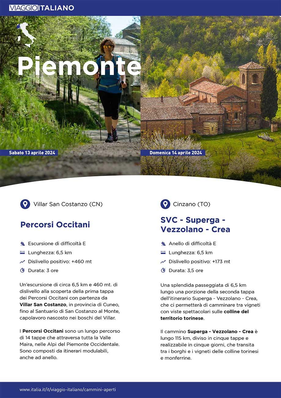 Sabato 13 e domenica 14 aprile 2024, il Piemonte si unirà a Cammini Aperti alla scoperta dei sentieri più suggestivi d’Italia